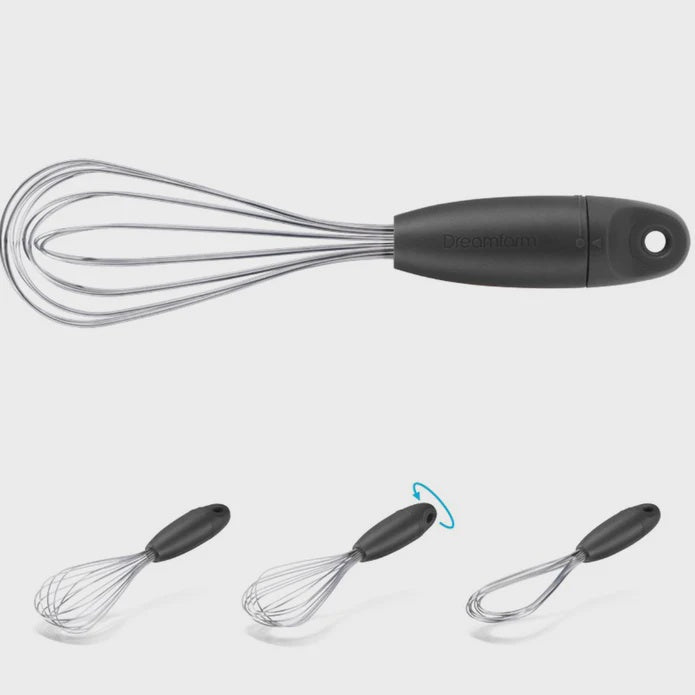 Mini Flisk twists to create 3 whisks from 1 – a mini balloon whisk for whipping, a sauce whisk for shallow liquids, and a flat whisk for scrambling eggs. It folds completely flat for space-saving storage that won’t get tangled up with other tools in your utensil pot or drawer. To clean, simply twist Mini Flisk into a flat whisk, scrape off excess ingredients, and put it in the dishwasher. No disassembly, and done in no time at all. It is the perfect size for smaller jobs. It fits easily into a mug or glass for mixing beverages, and into the little hands of mini helpers.
