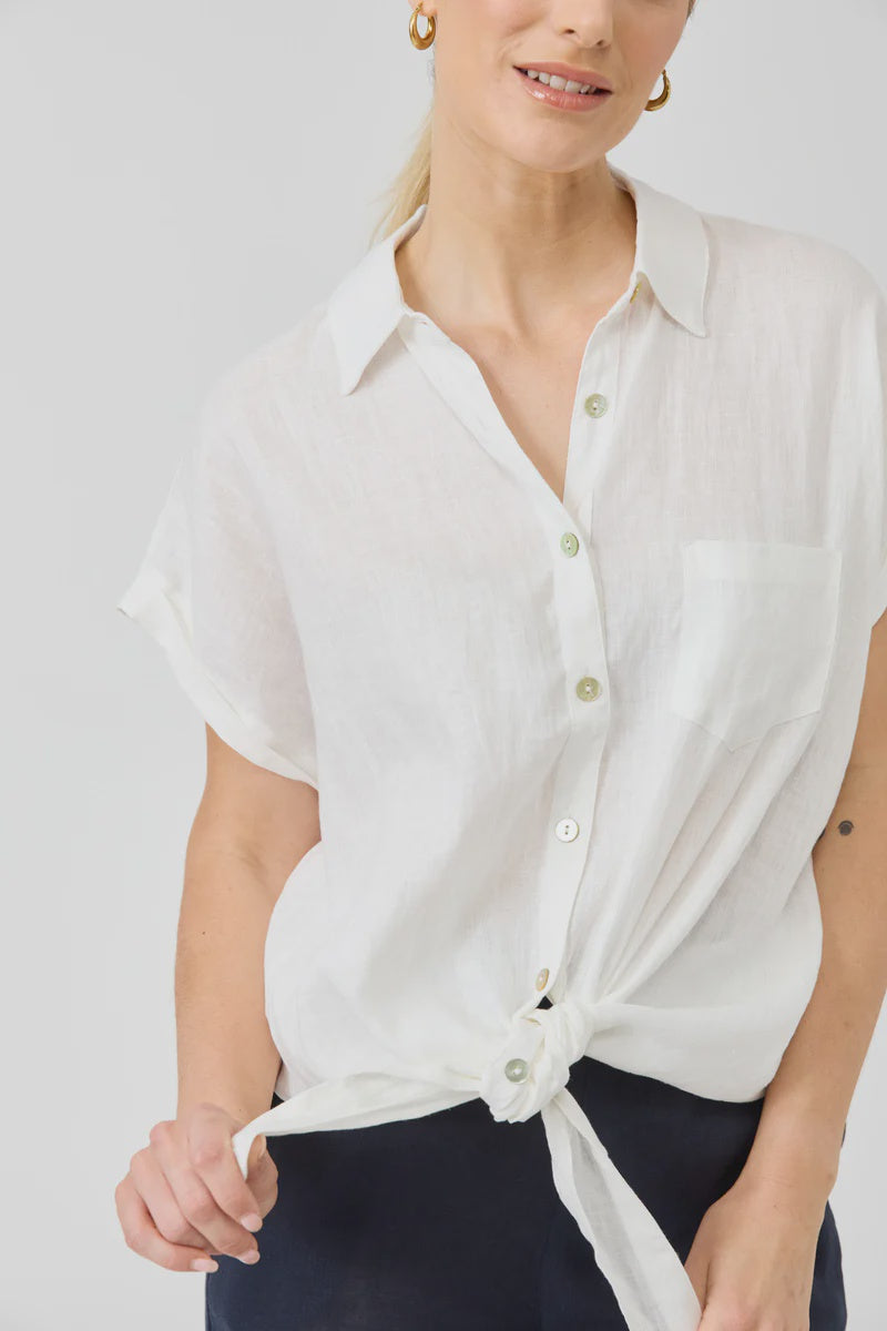 A best selling style, and for good reason. An everyday essential with a modern twist. Crafted from 100% linen for airy comfort. Features a collared neckline, short cuffed sleeves, and button-through front with tie detail.