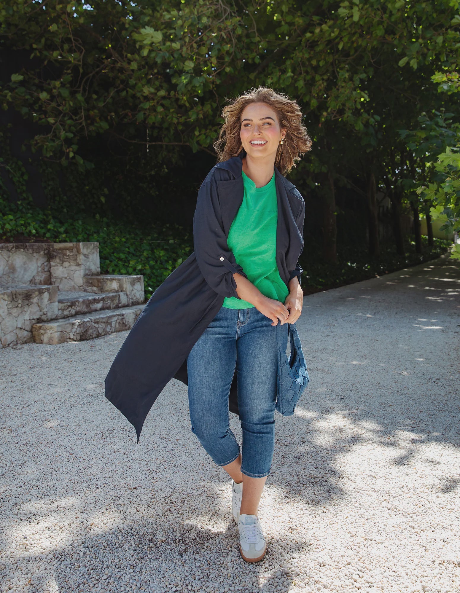 These stylish capri-style jeans are crafted from stretch denim with a classic 5-pocket design, a button and fly fastening and a slim, cropped leg. Perfect for everyday wear, paired with an oversized tee and your slides.