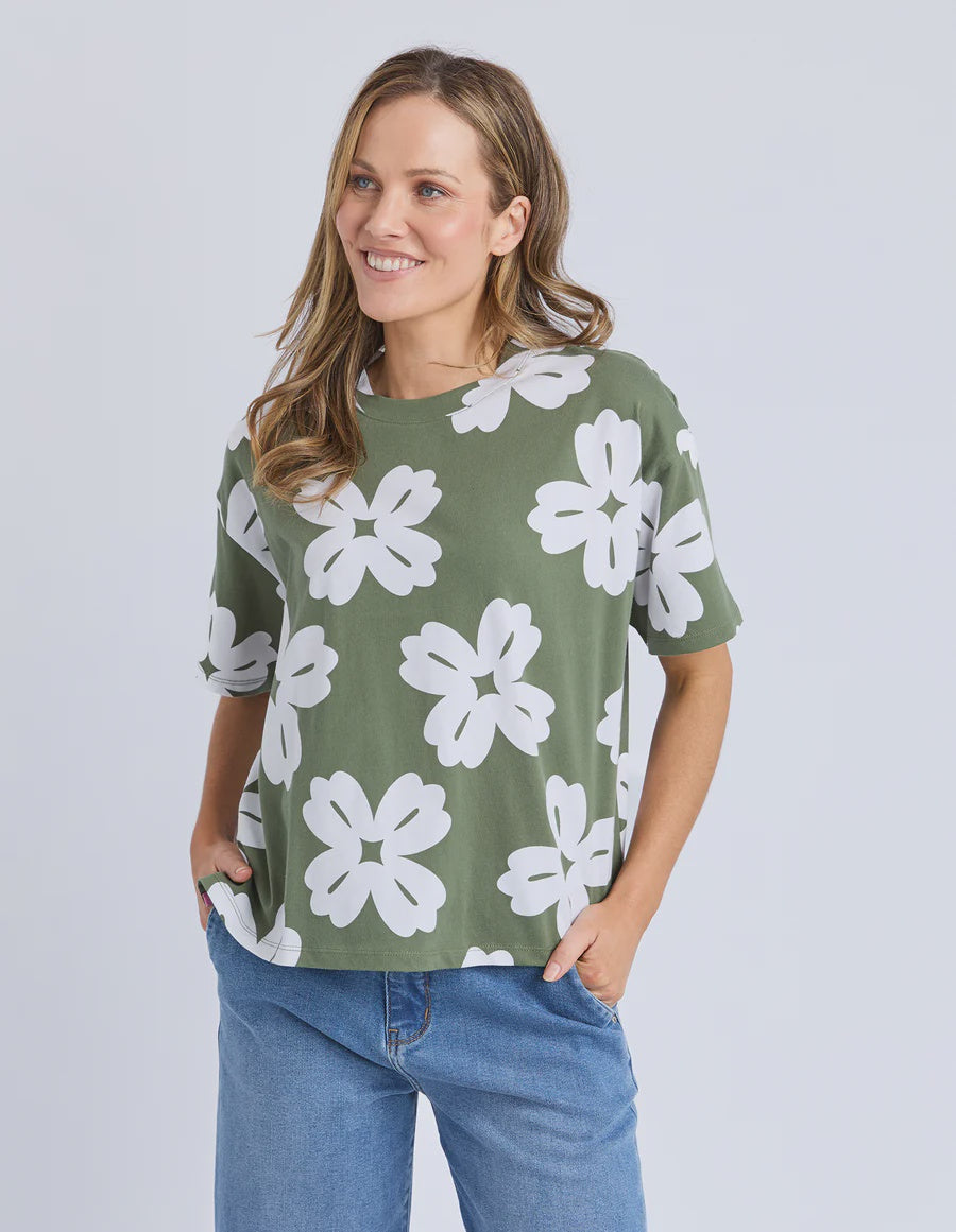 The Vera Tee - Clover offers effortless style with its soft, short sleeves and unique exclusive print. Perfect for everyday wear, this tee combines comfort and distinctive design, making it an essential piece to elevate your casual wardrobe.