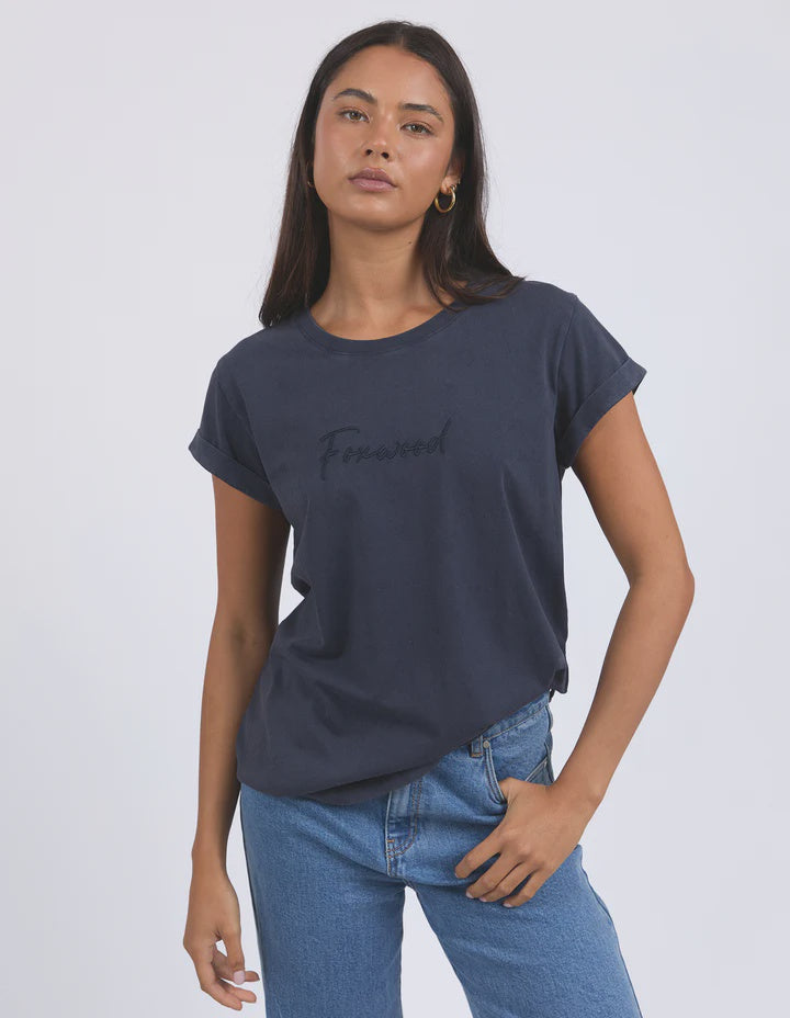 Our Signature Tee! For classic Foxwood style the artwork is embroidered and the t-shirt features a rolled cuff sleeve and curved hemline.
