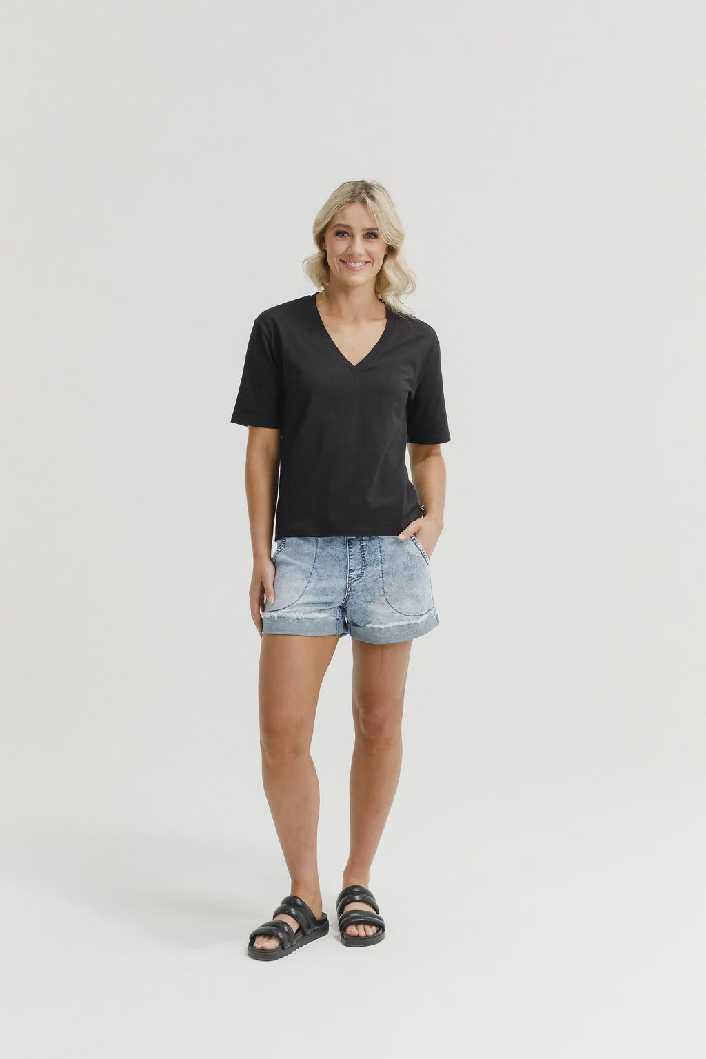 A timeless silhouette with everyday ease, The V-Neck Tee is your essential wardrobe staple. Featuring a classic V neckline and a straight-cut hem, this tee offers a flattering fit in versatile, easy-to-style colorways. Designed for effortless pairing, it’s the perfect foundation piece for mixing and matching with your existing favorites.