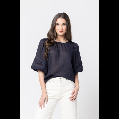 Leila + Luca Fateful Puff Sleeve Top - Navy