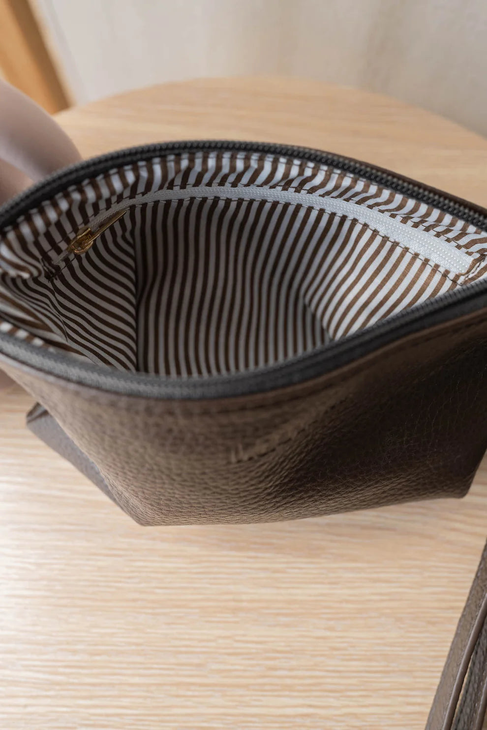 CONTENT: Vegan leather and poly-nylon lining