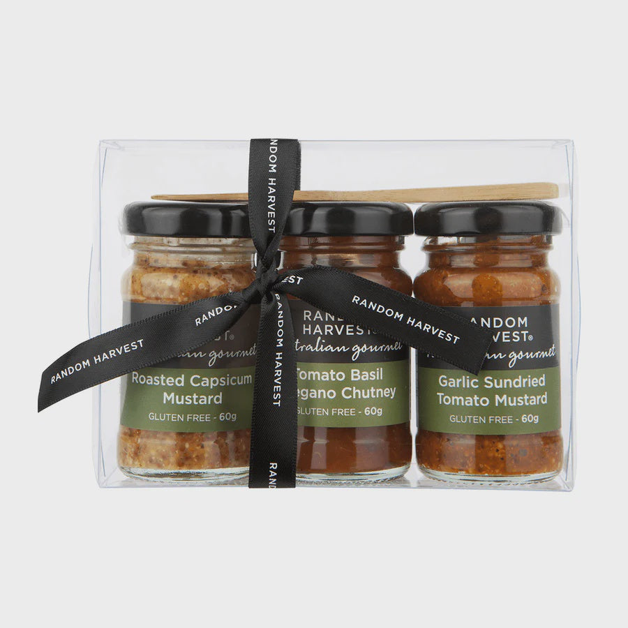 A delightful sampler pack containing 3 mini 60g jars perfectly presented with a wooden Spreader. A great gift for any one who enjoys fine food!